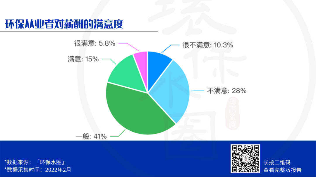 從調(diào)查結(jié)果我們可以看出,環(huán)保人的稅前月薪在5-8k之間的占比高達(dá)24%。 * 環(huán)保從業(yè)者對薪酬的滿意度