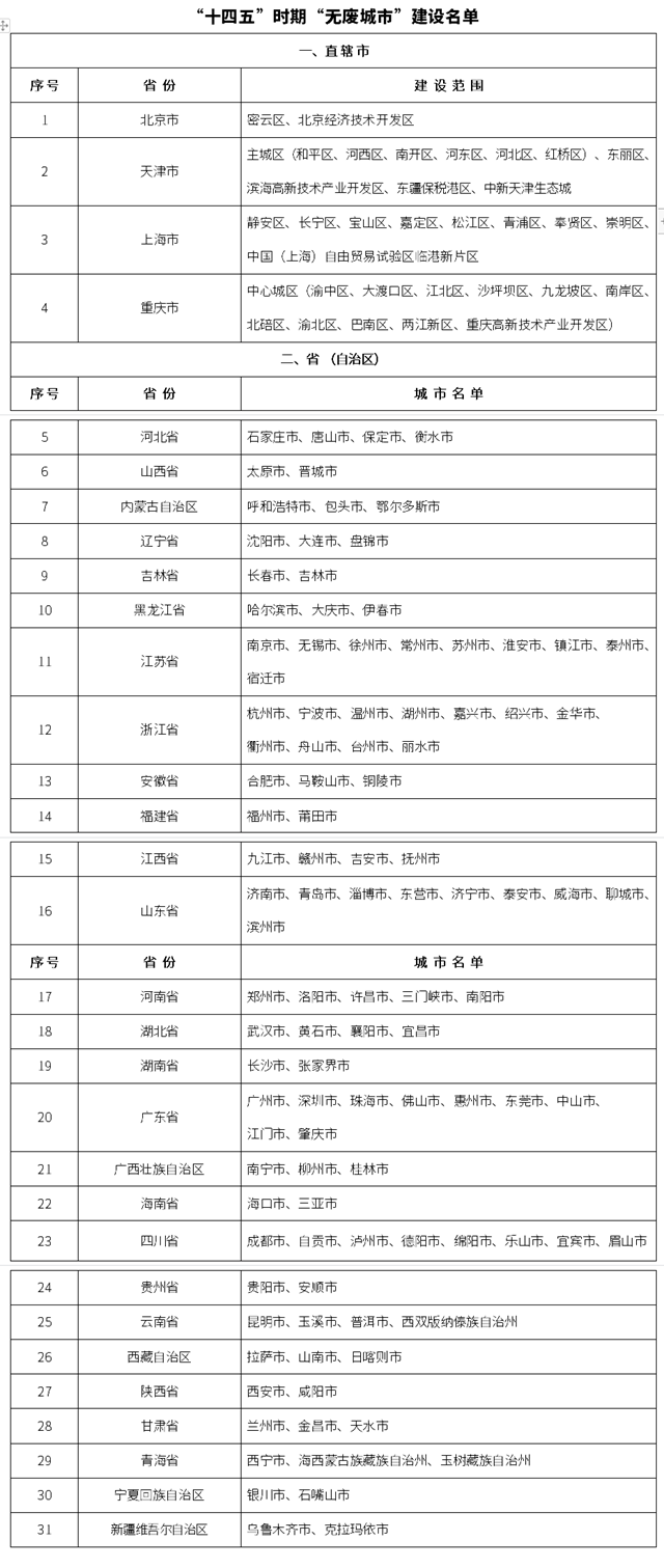 附件:“十四五”時期“無廢城市”建設(shè)名單
