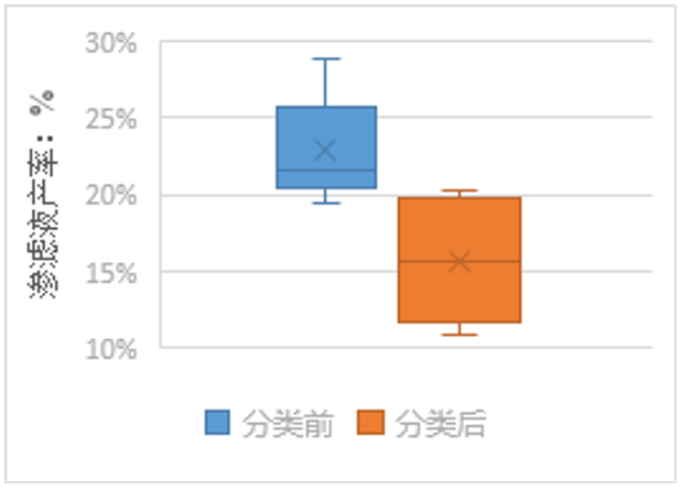 圖3 生活垃圾分類前后滲濾液產(chǎn)率分布對(duì)比圖
