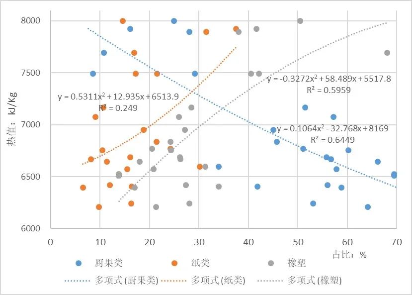 圖15 主要組分對(duì)垃圾熱值影響趨勢(shì)圖