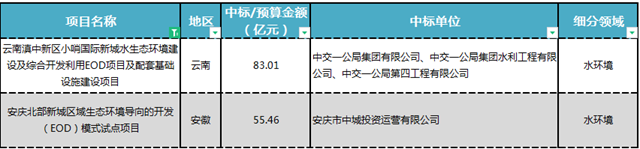此外,隨著國家層面針對EOD的政策文件不斷出臺,EOD乘著東風(fēng)迅速起飛。3月,兩大EOD項目總投資額高達(dá)138億元,分別被中交和當(dāng)?shù)貒Y斬獲。