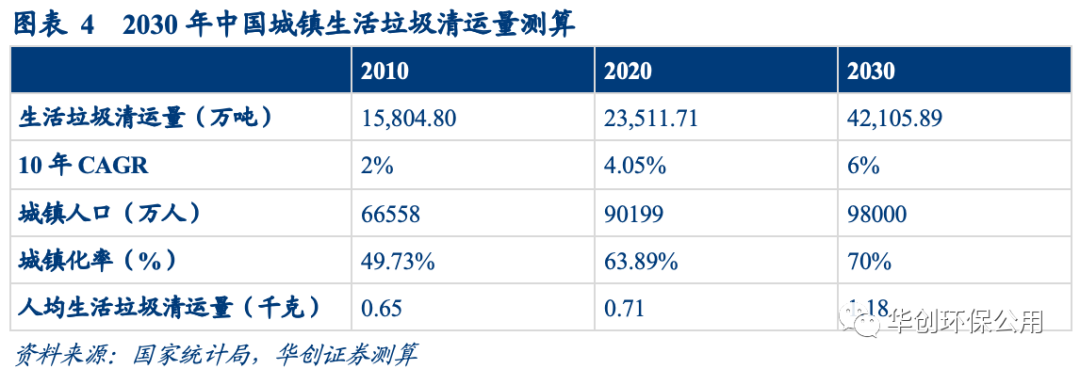 中國未來城市生活垃圾產(chǎn)生量仍存在較大上升空間。根據(jù)中國社會科學(xué)院農(nóng)村發(fā)展研究所、中國社會科學(xué)出版社聯(lián)合發(fā)布《城市藍(lán)皮書:中國城市發(fā)展報告No.12》,預(yù)計到2030年,中國城鎮(zhèn)化率將達(dá)到70%。按照2030年城鎮(zhèn)化率達(dá)到70%、城鎮(zhèn)人均1.18千克/天的垃圾產(chǎn)生量計算,中國的城鎮(zhèn)垃圾量將達(dá)到4.21億噸/年。若按未來城鎮(zhèn)化率達(dá)到80%、城鎮(zhèn)人均1.18千克/天的垃圾產(chǎn)生量計算,未來中國城鎮(zhèn)垃圾量將達(dá)到4.91億噸/年。