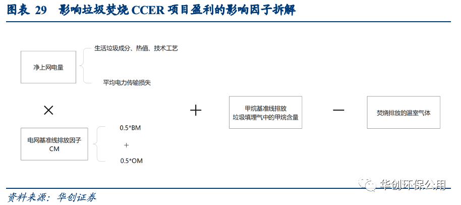CM-072-V01“多選垃圾處理方式”(第一版)中詳細(xì)規(guī)定了測算一個垃圾焚燒項目所產(chǎn)生的CCER噸數(shù)的方法學(xué)。與可再生能源發(fā)電項目相比,垃圾焚燒發(fā)電項目不僅替代了項目所在地電網(wǎng)的火力發(fā)電的碳排放,還避免了垃圾填埋產(chǎn)生的甲烷排放;但焚燒化石燃料也會帶來一定的溫室氣體排放。