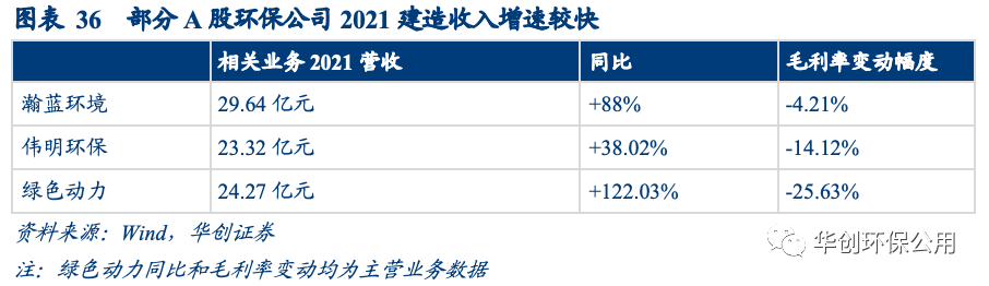 A股主流垃圾焚燒企業(yè)建造收入均出現(xiàn)不同幅度的增長。瀚藍(lán)環(huán)境2021年度工程與裝備業(yè)務(wù)營收大幅增長88%,由15.73億增至29.64億元(未剔除內(nèi)部交易),但固廢業(yè)務(wù)的毛利率整體下降4.21pct;偉明環(huán)保設(shè)備、EPC及服務(wù)營收同比增長38.02%至23.32億元,但毛利率卻下降14.12%;綠色動力2021年前不確認(rèn)建造收入和成本,會計政策變更后確認(rèn)建造收入24.27億元,總營收大幅增加122.03%至50.57億元,但綜合毛利率卻下降25.63%。垃圾焚燒運營期毛利率遠(yuǎn)高于建造毛利率,因此我們認(rèn)為會計準(zhǔn)則的變更在一定程度上可以解釋上述企業(yè)營收增加但毛利率下滑的原因。