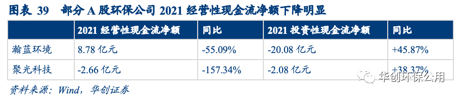 2021年8月,財政部發(fā)布了11個政府和社會資本合作(PPP) 會計處理實施問答,對PPP項目建造期間發(fā)生的建造支出在現(xiàn)金流量表中應(yīng)如何列示做出進(jìn)一步說明:PPP項目建造期間相關(guān)建造支出作為投資性現(xiàn)金流列示調(diào)整至經(jīng)營性現(xiàn)金流列示。我們認(rèn)為該會計準(zhǔn)則的變更是2021年部分環(huán)保上市公司經(jīng)營性現(xiàn)金流下滑的原因之一。