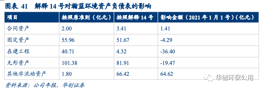 準(zhǔn)則變更對A股環(huán)保公司經(jīng)營性現(xiàn)金流影響明顯。以瀚藍(lán)環(huán)境為例,執(zhí)行新準(zhǔn)則后,公司經(jīng)營性現(xiàn)金流同比減少55.09%,投資活動現(xiàn)金流同比增加45.87%,如剔除解釋第 14 號的影響,經(jīng)營活動產(chǎn)生的現(xiàn)金流量凈額約為 20 億元,同比增長約2.24%。