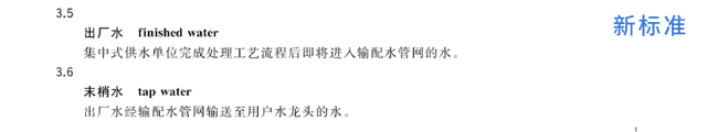 (3)新增出廠水、末梢水的定義,同時增加了末梢水消毒劑指標(biāo)要求;