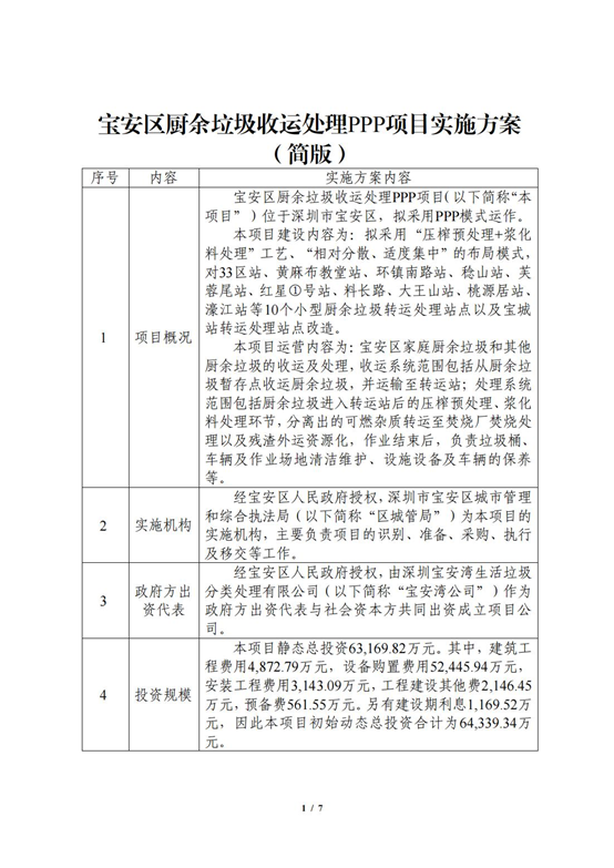 據悉,為構建完善的廚余垃圾分類投放、收集、運輸、處理體系,推動寶安區(qū)廚余垃圾收運處理PPP項目盡快落地,去年8月《寶安區(qū)廚余垃圾收運處理PPP項目實施方案》(征求意見稿)掛網公示,面向社會公開征求意見。