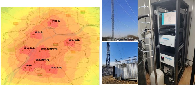 該溫室氣體試點(diǎn)監(jiān)測(cè)系統(tǒng)設(shè)在南京大學(xué)仙林校區(qū),利用現(xiàn)有觀測(cè)塔在75米、50米、25米三個(gè)高度進(jìn)行梯度采樣,實(shí)時(shí)監(jiān)測(cè)主要溫室氣體(CO2和CH4)濃度。該站點(diǎn)點(diǎn)位選址、儀器設(shè)備采樣分析及數(shù)據(jù)質(zhì)控均按照生態(tài)環(huán)境部《碳監(jiān)測(cè)評(píng)估試點(diǎn)工作方案》要求執(zhí)行,是江蘇省生態(tài)環(huán)境監(jiān)測(cè)系統(tǒng)中首個(gè)符合城市溫室氣體高精度監(jiān)測(cè)點(diǎn)位要求的站點(diǎn),填補(bǔ)了城市高精度溫室氣體監(jiān)測(cè)的空白,并首次實(shí)現(xiàn)了溫室氣體的梯度自動(dòng)監(jiān)測(cè)。