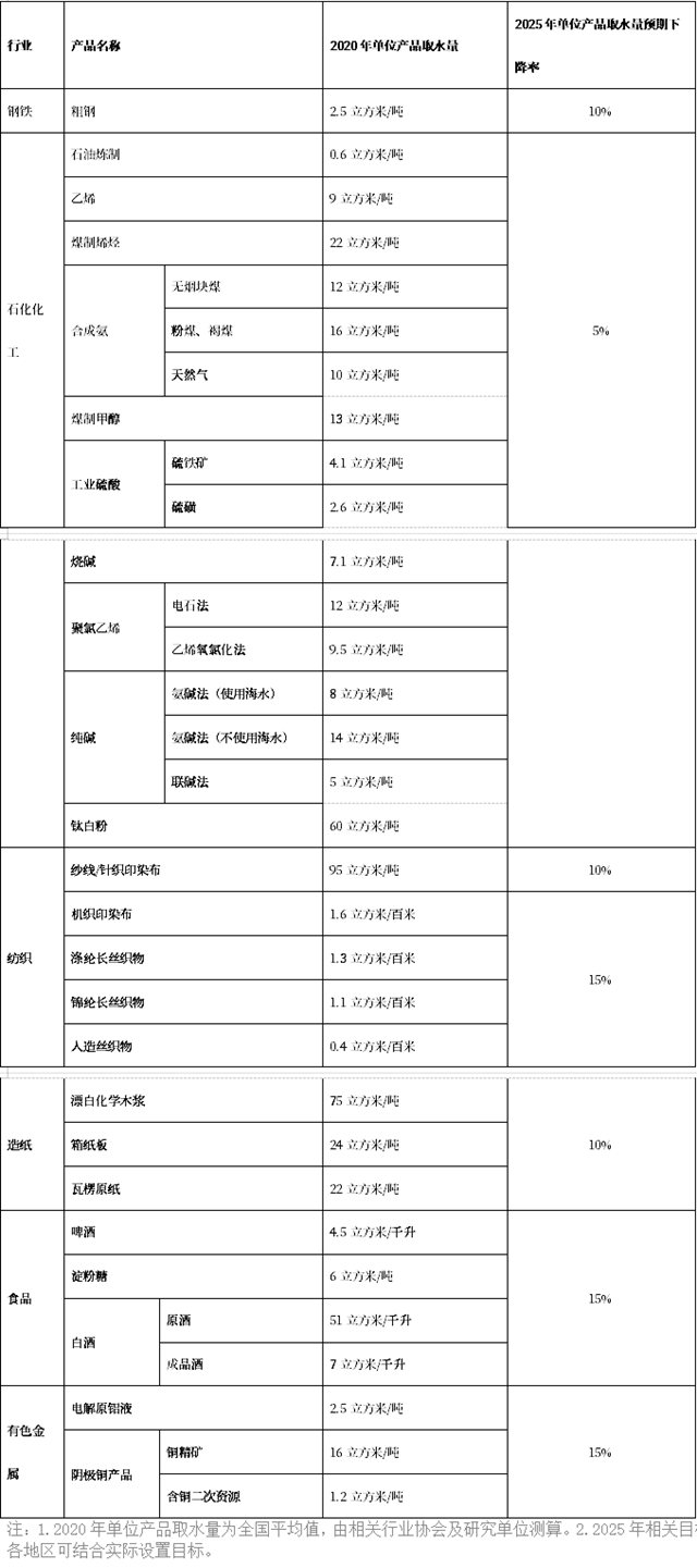 重點行業(yè)主要產(chǎn)品水效提升預期目標: