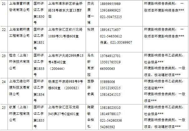 上海市建設(shè)項目環(huán)境影響評價單位一覽表(乙級)(2017年2月更新)