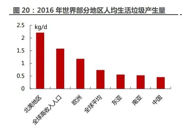 人均生活垃圾產生量與城市化和經(jīng)濟發(fā)展水平關聯(lián)較大,隨著居民生活水 平的提高,將誕生新的產能需求;