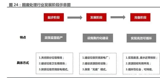 我們將固廢處理行業(yè)分為起步階段、發(fā)展階段、完備階段三個歷程?!笆濉?期間,隨著項目加快推進,固廢處理能力得到迅速提升,在固廢處理的“量”上, 現(xiàn)有項目已滿足基本處理需求;“十四五”期間,結合減污降碳的目標,在固廢處 理上,將更注重固廢處理“質”的提升。目前,我國固廢行業(yè)正處于由發(fā)展階段向 完備階段升級的過程,對于資源回收和近零排放提出更高的需求。2021 年 12 月國家發(fā)改委等 18 部委聯(lián)合發(fā)布《“十四五”時期“無廢城市”建設工作方案》,提出推動 100 個左右地級及以上城市開展“無廢城市”建設;到 2025 年,“無廢城市”固體廢物產生強度較快下降,綜合利用水平顯著提升,無害 化處置能力有效保障,減污降碳協(xié)同增效作用充分發(fā)揮,基本實現(xiàn)固體廢物管理信 息“一張網(wǎng)”。