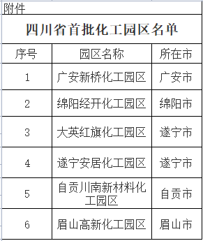 根據(jù)《通知》,共6家化工園區(qū)通過認定,成為四川省正式公布的首批化工園區(qū)。