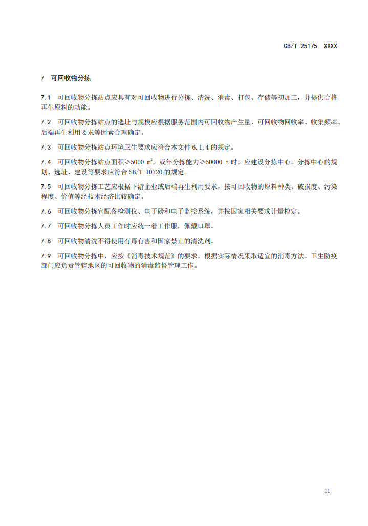 3、可回收物分揀站點(diǎn)環(huán)境衛(wèi)生要求應(yīng)符合本文件6.1.4的規(guī)定。