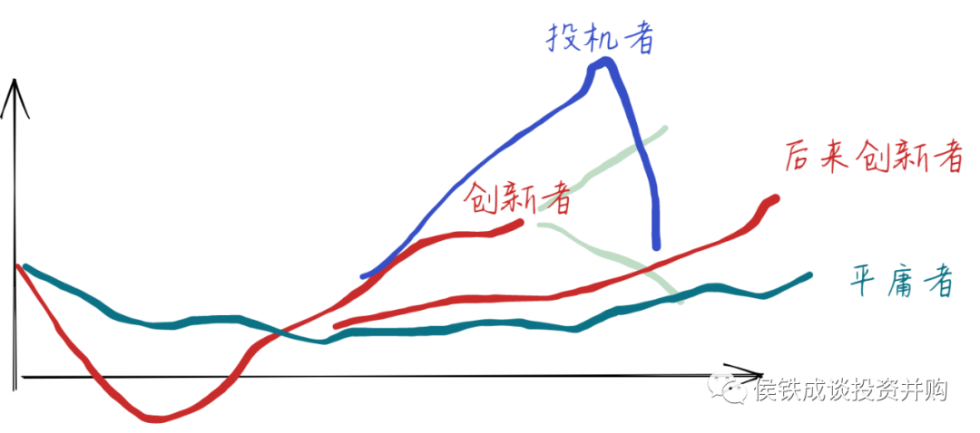 還有一部分摸索到底層的規(guī)律,利用行業(yè)的特征,展開新的商業(yè)模式探討,形成新的創(chuàng)新者,繼續(xù)帶動行業(yè)的發(fā)展。雖然都是術(shù)的問題,但是術(shù)也分高級低級之分。至少偉明采用的是一種比較高級的術(shù)。