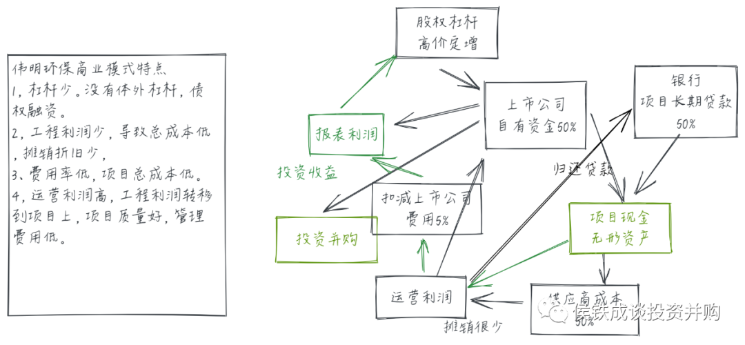 偉明一方面拓展新的業(yè)務(wù),另一方面也在走其他企業(yè)走過的路。自己賣設(shè)備給自己的投資項(xiàng)目,賺取工程毛利,這塊報(bào)表上有所體現(xiàn),并且比例不小,還有增長。也在走其他環(huán)保企業(yè)走過的老路。但由于前面反著走,給人們留下了穩(wěn)健的印象,現(xiàn)在走老路,反而不容易被發(fā)現(xiàn)。前面以誠懇示人,后面再回歸套路,是個很好的小閉環(huán)。企業(yè)成長的周期中,這個套路非常有效,也具有很強(qiáng)的持續(xù)性。偉明屬于環(huán)保行業(yè)的后來創(chuàng)新者,進(jìn)入行業(yè)較晚,但取得成績不小。