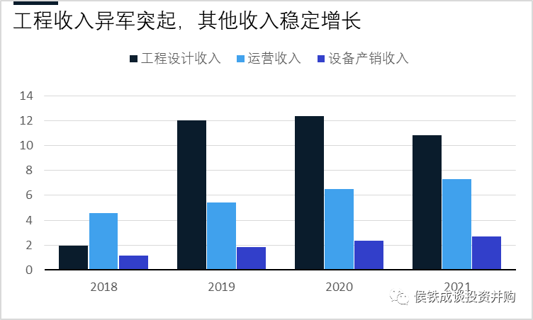 我們看到公司上市后收入利潤有個大的波動,2018年上市后,2019業(yè)績爆發(fā)增長。我們把業(yè)務(wù)拆分后,公司的成長一目了然,2019年主要是工程收入大幅上漲,帶動公司的業(yè)務(wù)收入迅速上升到20億以上。運營和設(shè)備收入,則穩(wěn)定增長。
