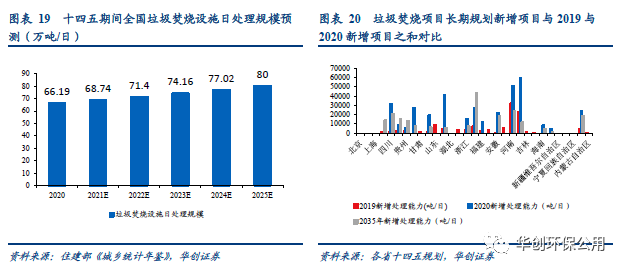 垃圾焚燒設(shè)施日處理規(guī)模超預(yù)期。根據(jù)2020城鄉(xiāng)統(tǒng)計年鑒的數(shù)據(jù),截至2020年底,我國垃圾焚燒設(shè)施的日處理規(guī)模(城鎮(zhèn)+縣城)合計已達(dá)到66.19萬噸/日,超額完成了十三五規(guī)劃58萬噸/日的目標(biāo)。