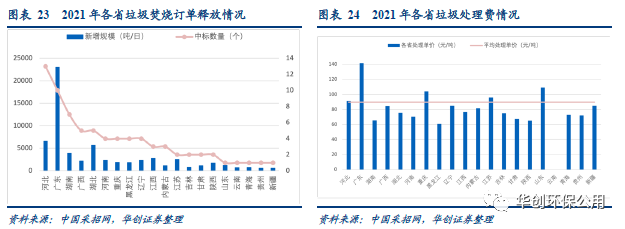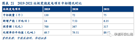 垃圾焚燒新訂單釋放速度減緩、處理費價格提升。2021年垃圾焚燒新增體量進(jìn)一步下降,全年中標(biāo)項目總處理規(guī)模達(dá)6.35萬噸/日,同比2020年下降15.67%。與此同時,2021年平均中標(biāo)處理單價為89.63元/噸,同比2020 年增長12.73%。近三年以來中標(biāo)價一直維持快速上升態(tài)勢,疊加政策推動,我們認(rèn)為未來很可能按照“產(chǎn)生者付費”原則,實施居民處理費,健全收費機制,垃圾處理費單價有望進(jìn)一步提升,降低對補貼依賴程度。