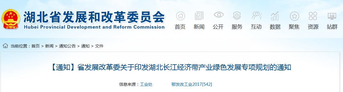 省發(fā)展改革委關于印發(fā)湖北長江經(jīng)濟帶產(chǎn)業(yè)綠色發(fā)展專項規(guī)劃的通知