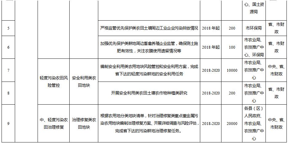 到2020年,受污染耕地安全利用率達(dá)到90%左右,污染地塊安全利用率達(dá)到90%以上,完成省級(jí)下達(dá)的污染耕地、污染地塊安全利用或治理修復(fù)任務(wù)。