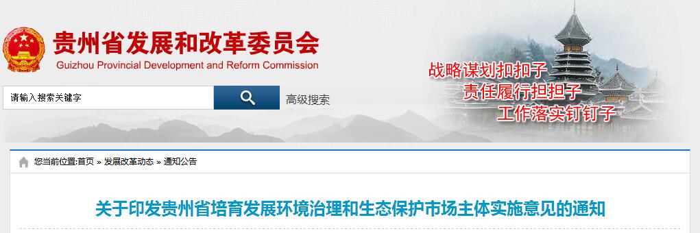 貴州省發(fā)改委發(fā)布《關(guān)于印發(fā)貴州省培育發(fā)展環(huán)境治理和生態(tài)保護(hù)市場主體實(shí)施意見的通知》,提出:
