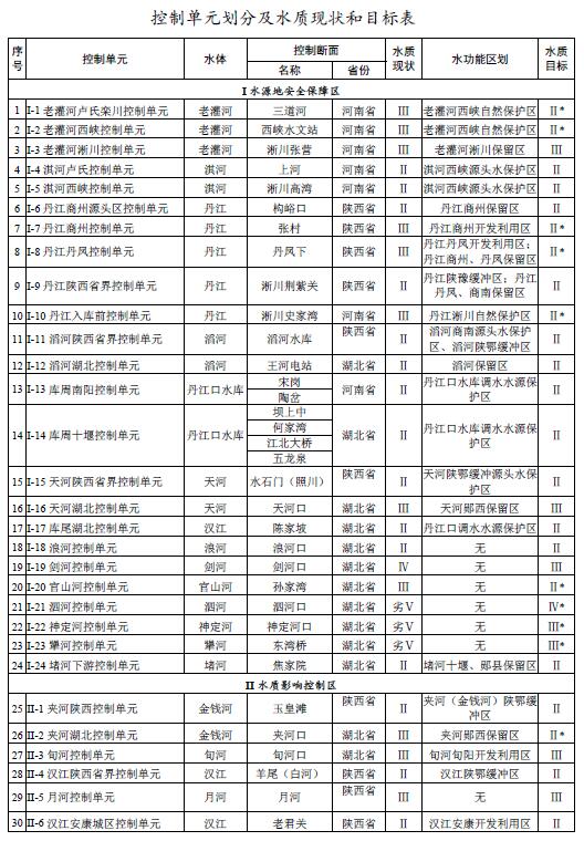 丹江口水庫和中線取水口水質(zhì)穩(wěn)定并保持Ⅱ類,庫區(qū)總氮濃度不劣于現(xiàn)狀水平;到2020年,漢江和丹江干流斷面水質(zhì)為Ⅱ類,其它直接匯入丹江口水庫的主要河流水質(zhì)達(dá)到水功能區(qū)水質(zhì)目標(biāo)。