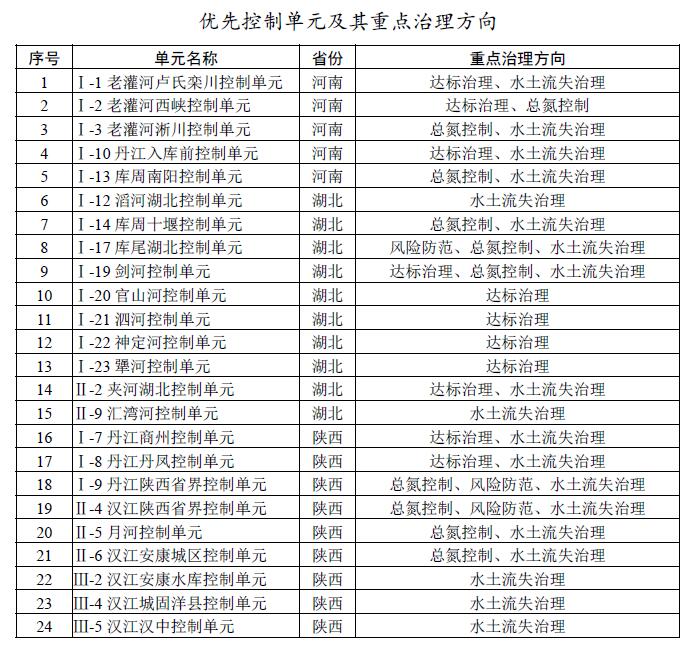 對43個控制單元逐一核定面積、水資源、污染源、人口、耕地、水土流失等情況,將未達(dá)到或未穩(wěn)定達(dá)到水質(zhì)目標(biāo)、總氮濃度高、水土流失較重、環(huán)境風(fēng)險較高的24個控制單元作為優(yōu)先控制單元,明確治理方向和治理任務(wù),加大治理力度。其中,達(dá)標(biāo)治理類11個,水土流失治理類19個,總氮控制類10個,風(fēng)險防范類3個(部分優(yōu)先控制單元涉及多個重點治理方向)。