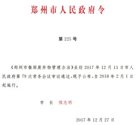 為了加強(qiáng)餐廚廢棄物管理,維護(hù)城市市容環(huán)境衛(wèi)生,保障食品安全,促進(jìn)資源循環(huán)利用,近日,鄭州市人民政府印發(fā)了《鄭州市餐廚廢棄物管理辦法》。詳情如下:
