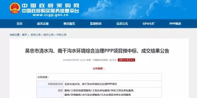 根據(jù)寧夏回族自治區(qū)公共資源交易網(wǎng)發(fā)布的《吳忠市清水溝、南干溝水環(huán)境綜合治理PPP項(xiàng)目預(yù)中標(biāo)、成交結(jié)果公告》,博天環(huán)境集團(tuán)股份有限公司(以下簡稱“公司”)確定為吳忠市清水溝、南干溝水環(huán)境綜合治理PPP項(xiàng)目(以下簡稱“項(xiàng)目”)的預(yù)中標(biāo)人。