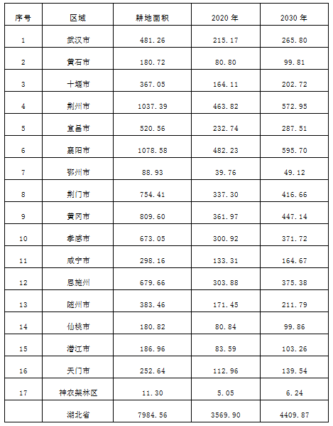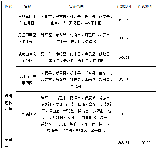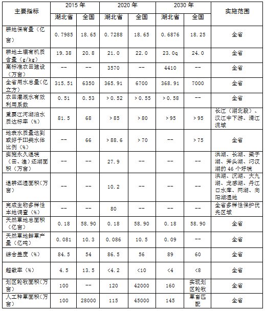 湖北省耕地草地河湖休養(yǎng)生息總體方案附表及說明