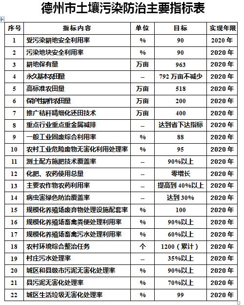 附件:德州市土壤污染防治主要指標(biāo)表