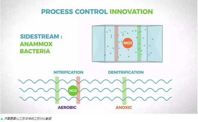 Anammox菌可將氨氮和亞硝酸氮結(jié)合轉(zhuǎn)化為氮氣。這個工藝過程節(jié)省了能源,而且占地面積更小。