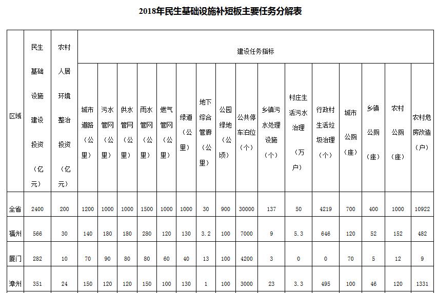 日前,福建印發(fā)《2018年民生基礎(chǔ)設(shè)施補(bǔ)短板實施方案》。