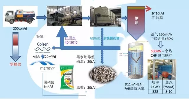 合肥市餐廚垃圾資源化利用和無害化處理工程(一期)項目則采用的是“水洗分選預(yù)處理+高效厭氧+生物好氧堆肥”路徑。項目日處理量為200噸/日,有機肥產(chǎn)量近60噸/日。利用黑水虻輔助堆肥處理,極大地降低了堆肥處理時間,加強了堆肥處理效率,而經(jīng)過水洗+高效厭氧處理的純凈物料又使得黑水虻的養(yǎng)殖效果更佳,而黑水虻本身亦可用于蛋白質(zhì)生產(chǎn)。采用黑水虻養(yǎng)殖工藝極大地增長了餐廚垃圾資源化收益。