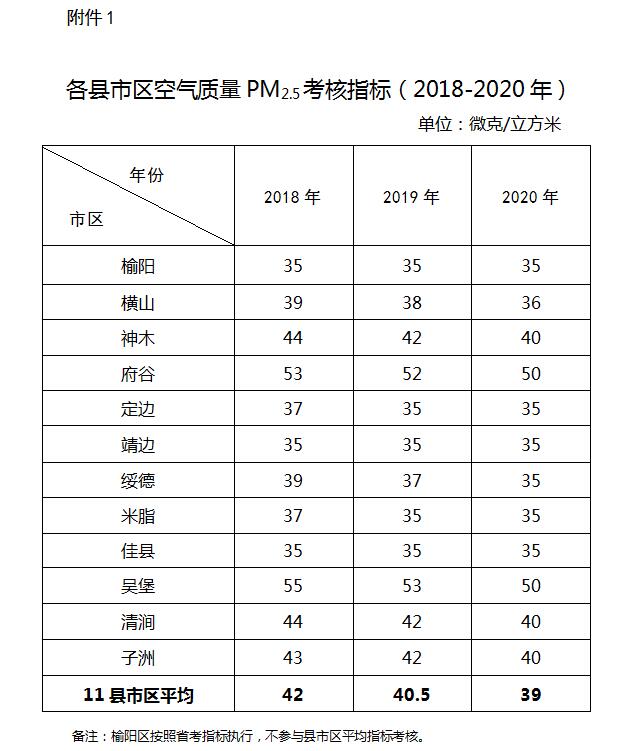 (二)工作目標。以可吸入顆粒物(PM10)和細顆粒物(PM2.5)防治為重點,協(xié)同推進氮氧化物、揮發(fā)性有機物等臭氧前體污染物控制。到2020年,榆林城區(qū)優(yōu)良天數比例達到82.5%(301天),細顆粒物(PM2.5)濃度達到35微克/立方米。其余各縣市區(qū)優(yōu)良天數比例達到75%(274天),細顆粒物(PM2.5)濃度較2017年下降8%(39微克/立方米)。全市可吸入顆粒物(PM10)明顯下降,重污染天數明顯減少,二氧化氮濃度上升和臭氧污染加重的趨勢得到遏制,二氧化硫、一氧化碳年均濃度基本達到國家環(huán)境空氣質量二級標準。