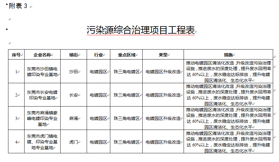 3. 污染源綜合治理項目工程表