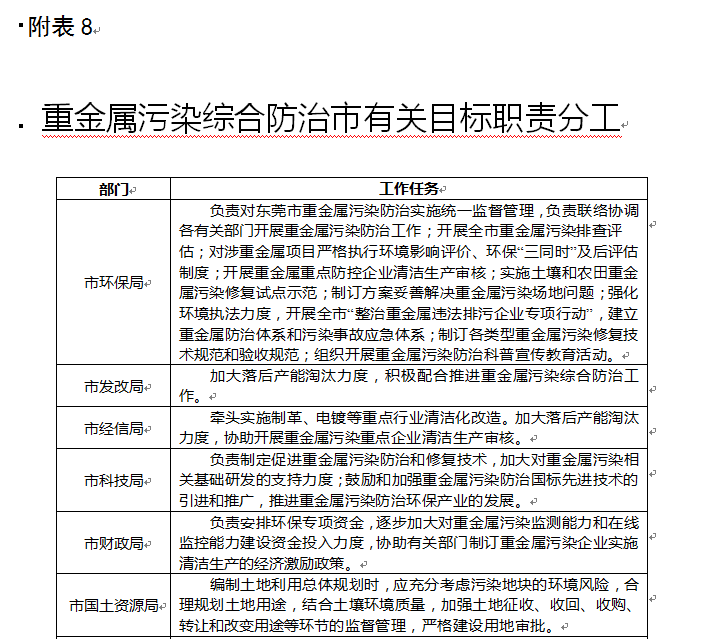 8. 重金屬污染綜合防治市有關(guān)目標(biāo)職責(zé)分工