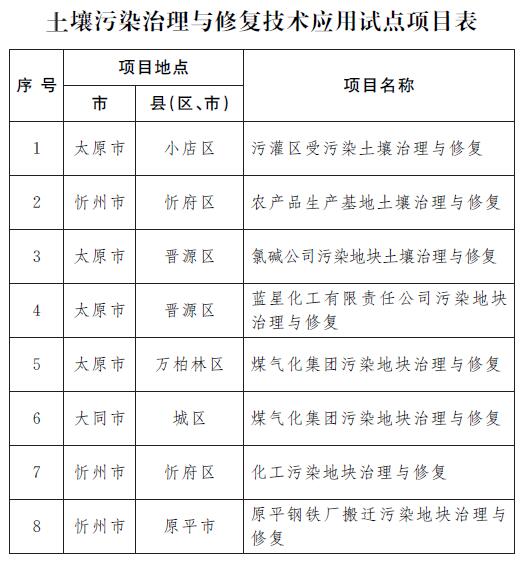 17.推進土壤污染治理與修復項目庫建設,強化土壤污染防治項目儲備。進一步推進8個土壤污染治理與修復技術應用試點項目(見附件),2018年底前完成2個農(nóng)用地土壤污染治理與修復試點項目。(責任單位:各市、縣人民政府,省環(huán)保廳、省農(nóng)業(yè)廳、省財政廳)