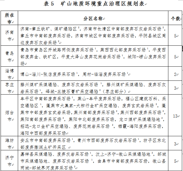 山東省礦山地質(zhì)環(huán)境保護(hù)與治理規(guī)劃
