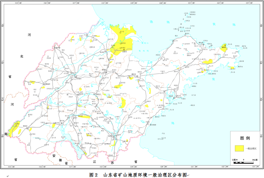 根據(jù)山東省礦山地質(zhì)環(huán)境調(diào)查最新成果,結(jié)合《全國(guó)礦產(chǎn)資源規(guī)劃》《山東省礦產(chǎn)資源總體規(guī)劃》中有關(guān)礦山地質(zhì)環(huán)境治理分區(qū)結(jié)果,充分考慮重點(diǎn)礦山地質(zhì)環(huán)境問(wèn)題發(fā)育現(xiàn)狀和影響范圍,劃分礦山地質(zhì)環(huán)境重點(diǎn)治理區(qū)和一般治理區(qū)。