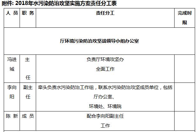 省廳成立環(huán)境污染防治攻堅(jiān)戰(zhàn)領(lǐng)導(dǎo)小組辦公室(以下簡(jiǎn)稱廳環(huán)境攻堅(jiān)辦),馮進(jìn)城處長(zhǎng)任辦公室主任。下設(shè)大氣、水和土壤污染防治工作組。水污染防治工作組由副主任李向陽(yáng)牽頭負(fù)責(zé),省地質(zhì)環(huán)境監(jiān)測(cè)院陳新配合,聯(lián)系水污染防治攻堅(jiān)成員單位,包括廳辦公室、環(huán)境處、環(huán)境院。