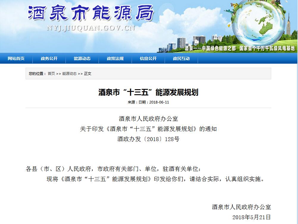 酒泉市能源局日前印發(fā)《酒泉市“十三五”能源發(fā)展規(guī)劃》,《規(guī)劃》包括近零碳排放區(qū)建設等內(nèi)容,包含一個垃圾發(fā)電項目和三個生物質發(fā)電項目。