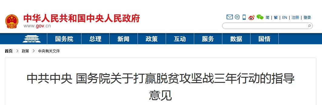 中共中央 國務(wù)院關(guān)于打贏脫貧攻堅戰(zhàn)三年行動的指導意見