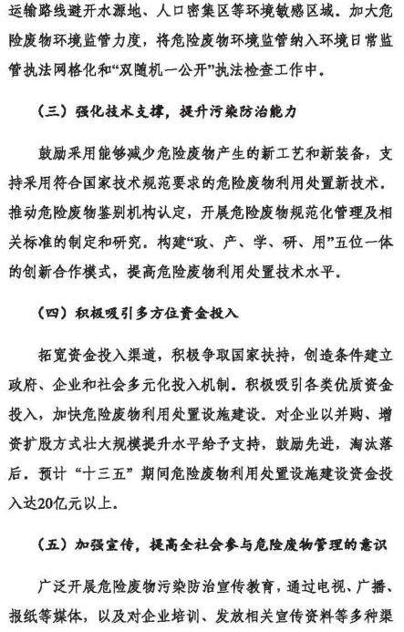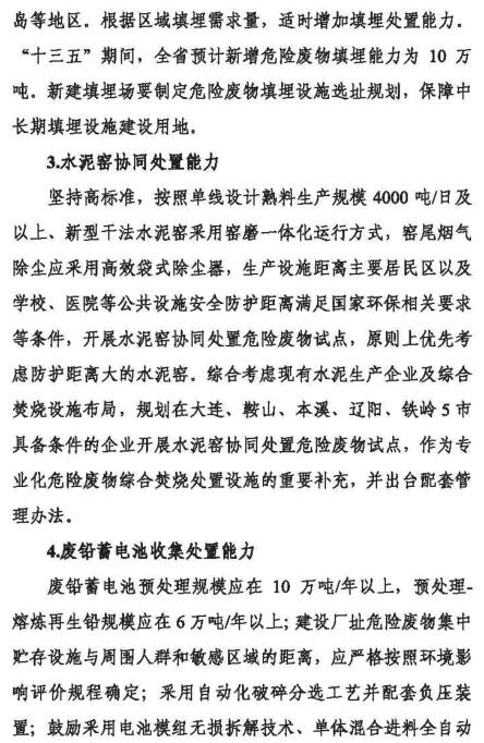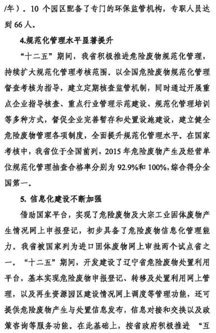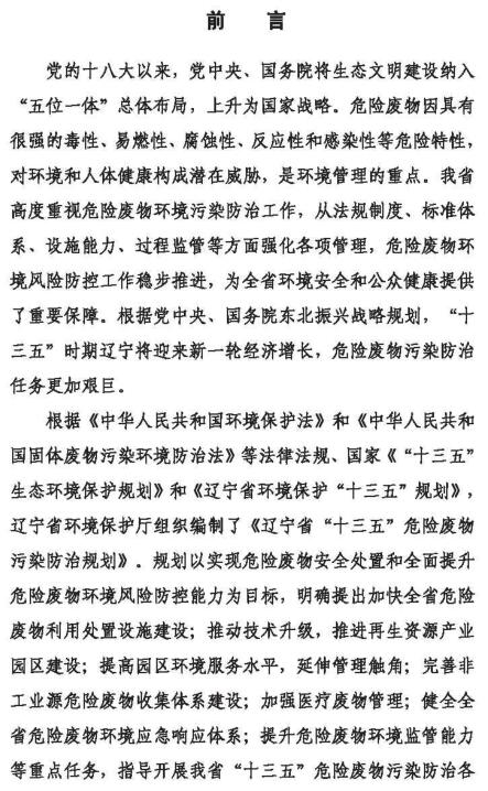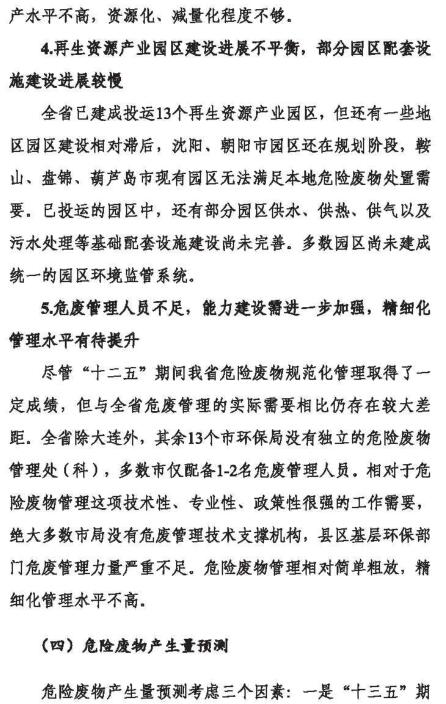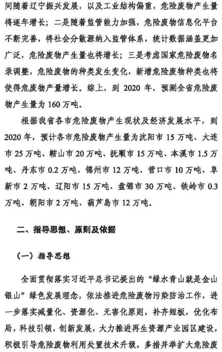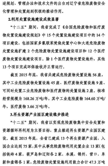日前,遼寧環(huán)保廳公布了《遼寧省“十三五”危險廢物污染防治規(guī)劃》,預(yù)計“十三五”期間危險廢物利用處置設(shè)施建設(shè)資金投入達20億元以上,全省新增危險廢物處置能力50萬噸以上,全省危險廢物利用處置總能力達220萬噸,基本滿足全省危險廢物利用處置需求。