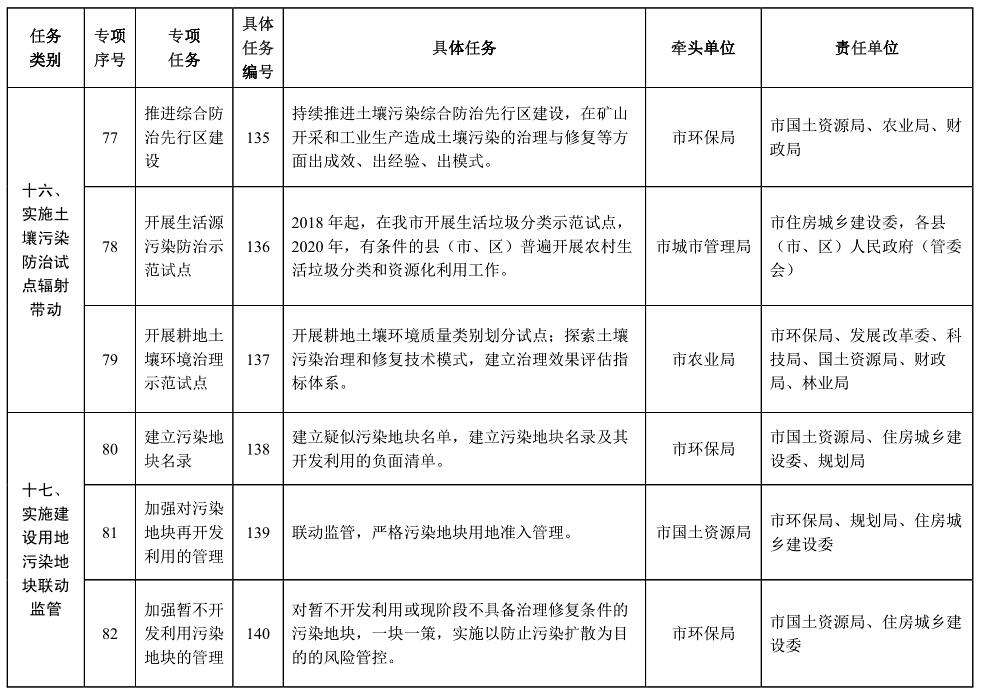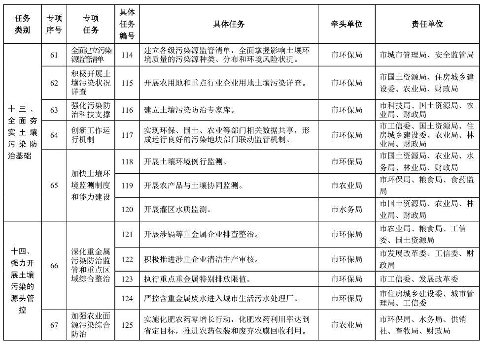 責(zé)任單位:市環(huán)保局、國土資源局、科技局、財(cái)政局,各縣(市、區(qū))人民政府(管委會)