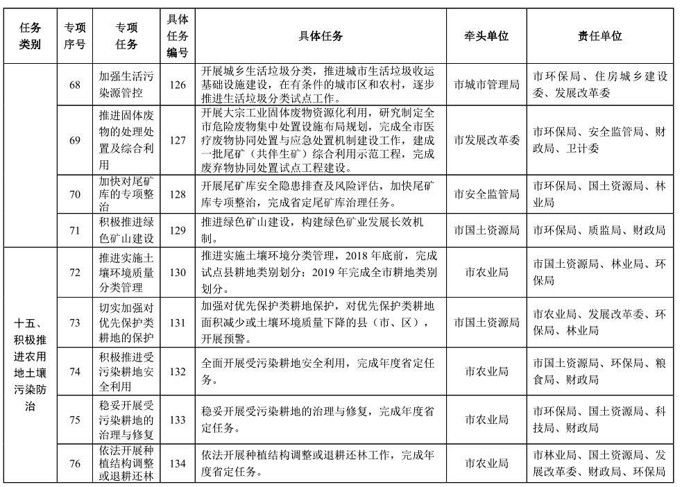 責(zé)任單位:市環(huán)保局、發(fā)展改革委、國土資源局,各縣(市、區(qū))人民政府(管委會)
