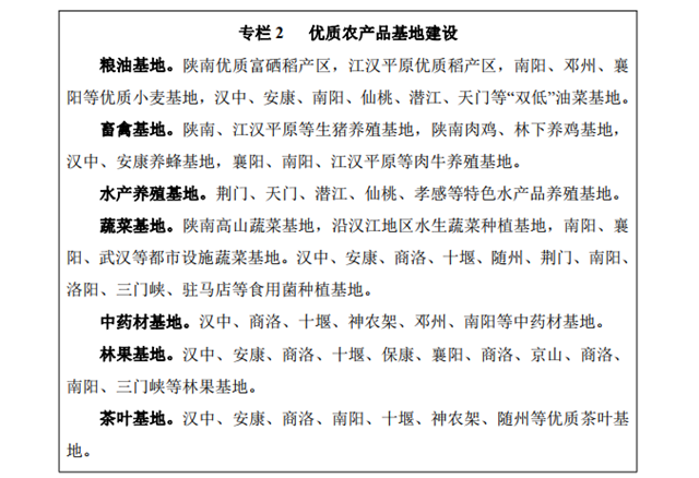 推進現(xiàn)代農(nóng)業(yè)發(fā)展。發(fā)展農(nóng)產(chǎn)品加工業(yè),統(tǒng)籌推進農(nóng)產(chǎn)品初加 工、精深加工和綜合利用加工,延長產(chǎn)業(yè)鏈條。拓展農(nóng)業(yè)多功能性, 推進農(nóng)業(yè)與旅游、教育、文化、健康養(yǎng)老等產(chǎn)業(yè)深度融合,發(fā)展休 閑農(nóng)業(yè)、觀光農(nóng)業(yè)、體驗農(nóng)業(yè)、創(chuàng)意農(nóng)業(yè)等新業(yè)態(tài)。做好農(nóng)村產(chǎn)業(yè) 融合發(fā)展“百縣千鄉(xiāng)萬村”試點示范工作,打造一批農(nóng)村產(chǎn)業(yè)融合發(fā) 展示范園。加快農(nóng)業(yè)科技創(chuàng)新能力條件建設,聯(lián)合開展農(nóng)業(yè)氣象、 病蟲害監(jiān)測預警、動植物疫病防治等關(guān)鍵技術(shù)研發(fā)和基礎(chǔ)設施建 設。支持漢中、南陽、十堰、荊門、仙桃、潛江、武漢等國家農(nóng)業(yè) 科技園建設,推進農(nóng)業(yè)科技創(chuàng)新聯(lián)盟發(fā)展。建立全程可追溯、互聯(lián) 共享的農(nóng)產(chǎn)品質(zhì)量安全信息平臺。
