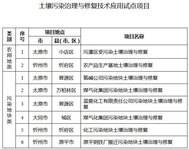 20.推進土壤污染治理與修復項目庫建設,強化土壤污染防治項目儲備。進一步抓好土壤污染治理與修復技術應用試點工作,2017年重點實施2個農(nóng)用地類和6個污染地塊類土壤污染治理與修復技術應用試點項目(見附件),按照國家規(guī)定時限要求完成。以城市周邊污灌區(qū)、受污染耕地集中區(qū)域為重點,各市要啟動一批受污染耕地治理與修復項目,全省共啟動3000畝受污染耕地治理與修復。(省環(huán)保廳、省農(nóng)業(yè)廳、省國土資源廳牽頭,各市人民政府負責落實)